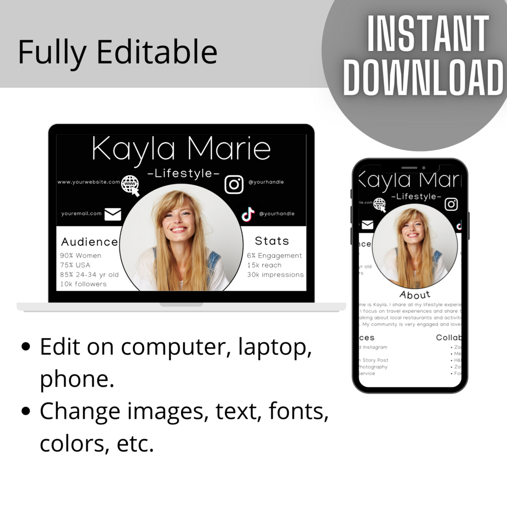 - Perfect media kit for any type of influencer, blogger, vlogger, social media manager